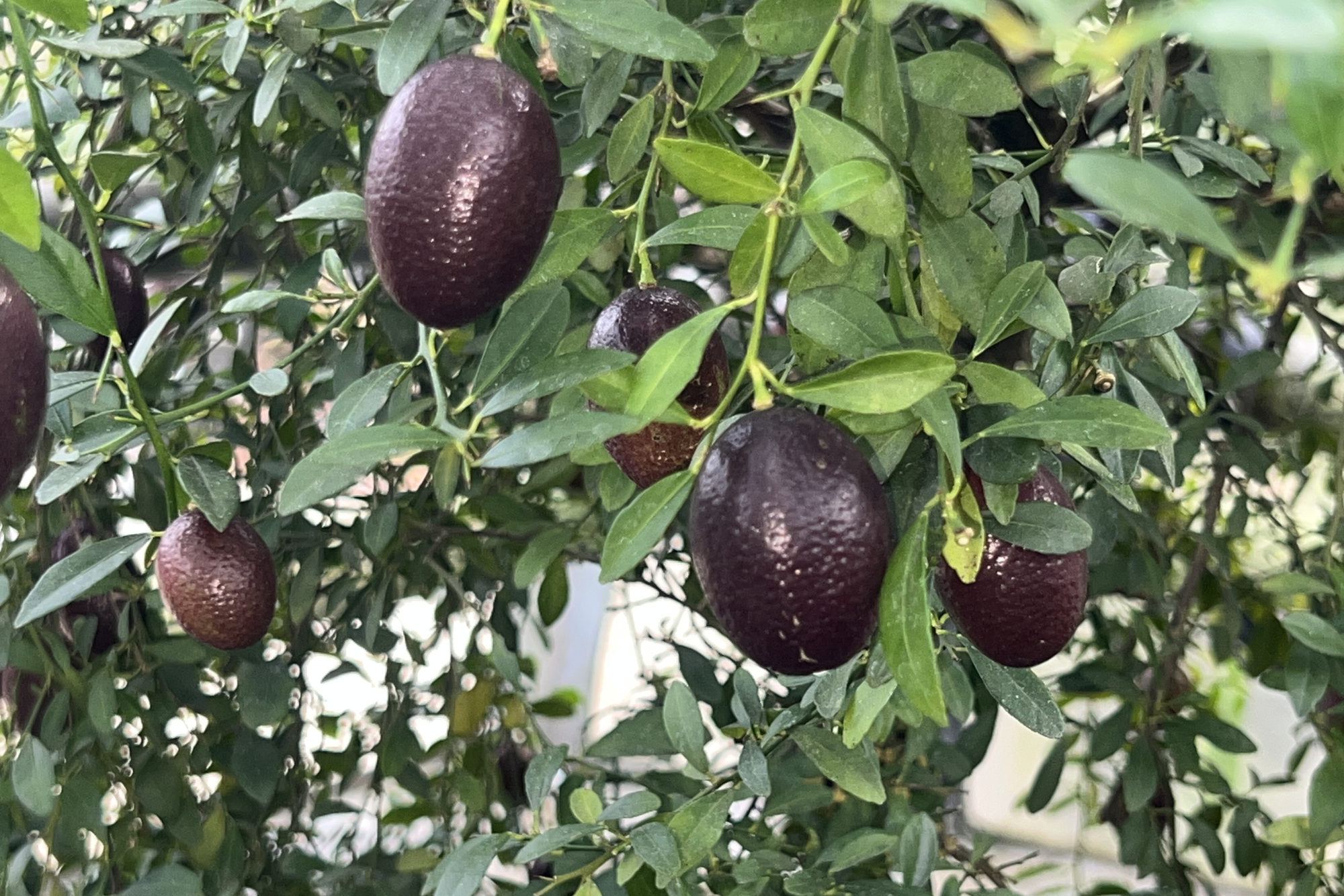 Diese australische Wildzitrone wächst kompakt und trägt elegante, längliche Früchte. Ihr saftig-säuerliches Fruchtfleisch verleiht Drinks und Speisen eine erfrischend exotische Note.